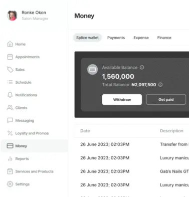 With built-in payment tools, Splice helps you collect deposits, take payments online or in person, and avoid no-shows. From POS to bank transfers, you get paid on your terms – with everything tracked in one place.
